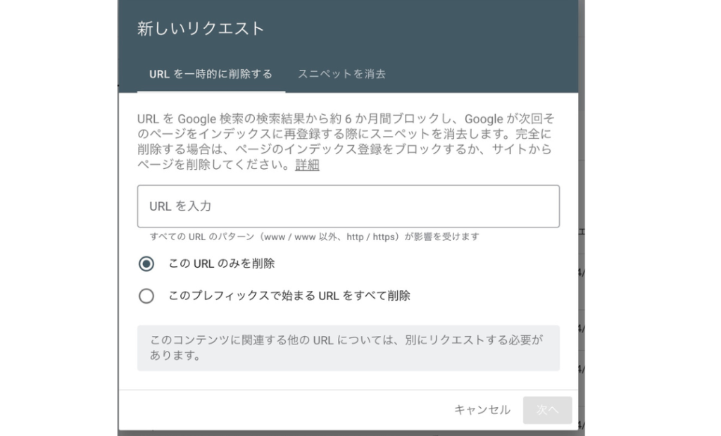 ちなみに記事をインデックスから削除するときもサーチコンソールからできます。