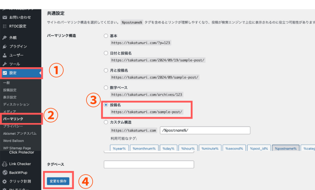 ②パーマリンク設定