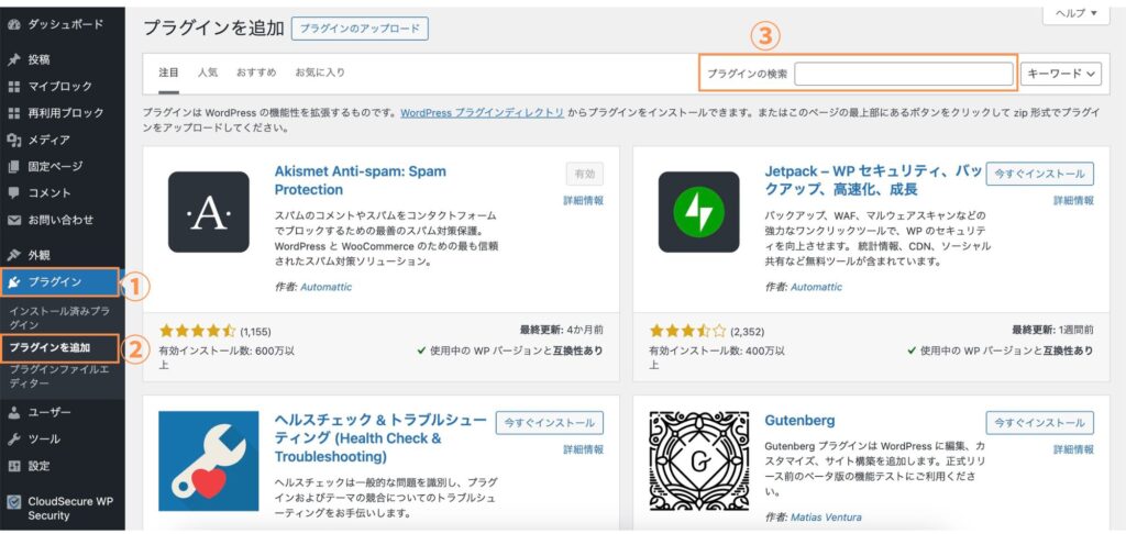 - 管理画面からプラグイン