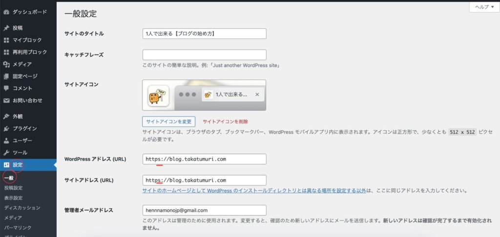 - WordPress アドレス (URL)で『httpの後ろにsを入れるだけ』