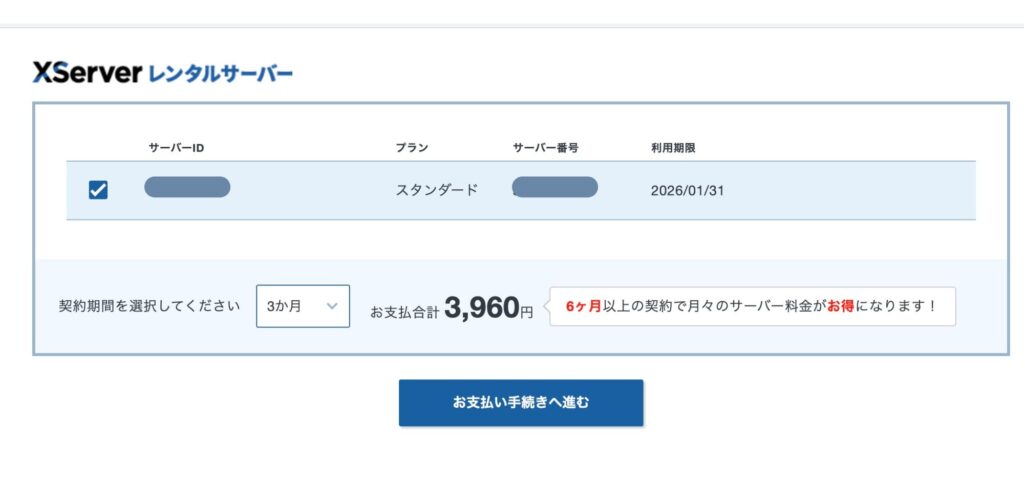 契約期間が長いほどサーバー料金がお得になります。