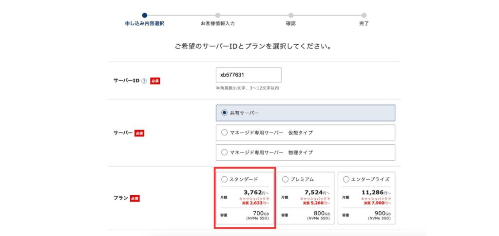 | プラン | スタンダード(コスパ重視) |